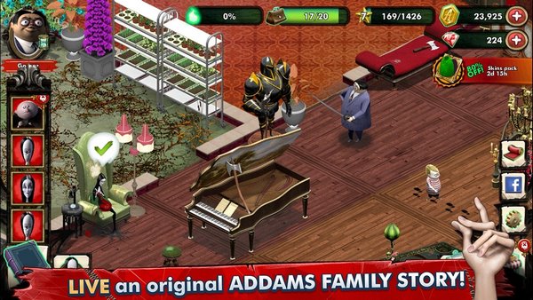 除了规划、建造和设计之外,不要忘记装饰房子,特别是令人毛骨悚然:你有家具、图片、食肉植物和许多其他令人毛骨悚然的物品,可以为神秘大厦提供令人毛骨悚然的装饰和装饰,赋予它著名的亚当斯家族魅力,让角色尖叫!充当专业的房间规划师,建造一栋让亚当斯一家感到宾至如归的房子,角色可以体验一个又一个令人毛骨悚然的故事,随着角色的游戏而展开!