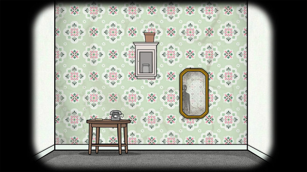 1、进入房间,映入眼帘的是桌子上的电话以及信封。柜子里锁着一个玻璃罐子,上方还有一个花盆。镜子里倒映着一个诡异的黑影。