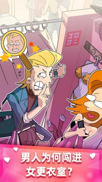 游戏的设计也很巧妙,每个关卡都有一些小谜题需要解决,比如观察男生身上的细节,找出证据证明他们是骗子。这种解谜的过程既考验眼力,又需要动脑筋,玩起来 totally 不会无聊。