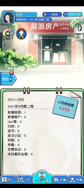 12、关于主攻小区的选择,选择一室户型的话成交量会稍高一些,但是提成会比较少。二室以上户型单价都会更高很多,提成也会高。萌新建议选一种就坚定的玩下去,玩熟一遍之后可以再开一个前期一种后期转另一种。