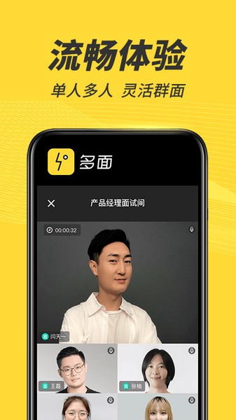 多面app以其独特的功能为求职者提供了全新的使用体验。首先,视频面试间的PC与移动流畅互通,支持多人群面,使得初面和复面能够在线上高效完成,面试反馈及时而有效。其次,百万春招好职位覆盖在校学生、职场白领以及城市蓝领职位,为求职者提供了更广泛的选择,通过视频面试轻松找到理想工作。此外,应用还提供了求职秘笈,包括简历修改、面试指导以及职场进阶课程等,为求职者提供免费赋能,助力他们在职场取得更快的成功。