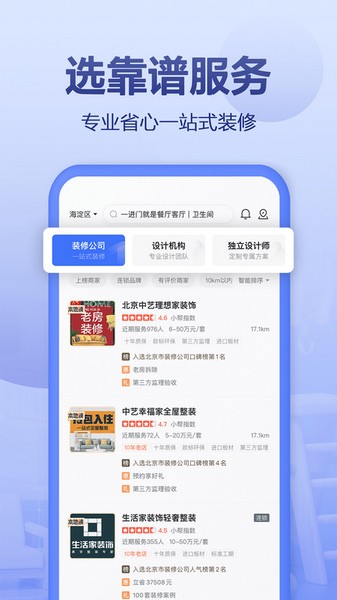 大数据科学算法,10秒轻松计算出装修预算,平台认证的在线设计师和本地装修公司提供免费专业的咨询服务,提升装修品质和空间利用,帮你装出理想家。