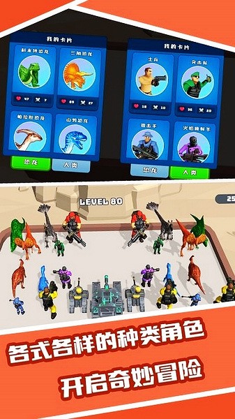 恐龙合成与升级:玩家可以通过合成两个相同的恐龙来生成更加高级的恐龙,并不断提升恐龙的属性和技能。同时,玩家还可以使用金币来购买和升级射手角色,为自己的团队增添更多的战斗力。