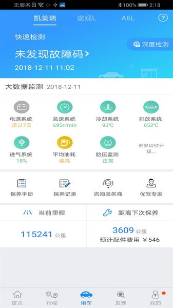2)优驾行提供汽车检测功能,让用户了解车辆的健康程度