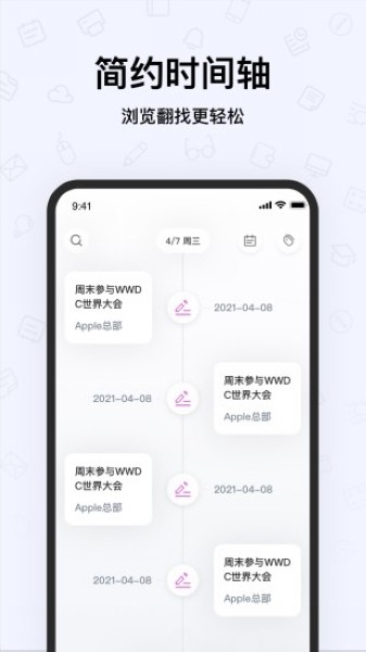 pendo笔记下载安卓版是一款集合了多样功能的手机笔记日记类应用软件。这款软件将笔记、日记、待办事项记录管理等功能统合在一起,方便用户使用这款软件进行操作。用户可以在软件中创建全新的日记,将自己每一天的遭遇记录下来,以时间顺序排列,每一条内容都可以快速搜索查询。同时用户还可以添加各种类型的笔记,将需要记录的内容快速写入页面中,方便之后进行整理编辑。软件为用户提供了各种用途的表格模板,直接套用模板并填充文字内容,操作非常的方便。此外,用户可以在日历中创建各项日程表,将待办事项记录在上面并设置提醒,规划好每件事情的处理时间段,在日期内会提醒用户及时处理事务。用户可以以时间轴的样式创建一个全新的列表清单,将需要做的事务添加到列表中,软件会自动按照设定的时间进行排序,简约的界面让列表看起来十分的干净,浏览翻阅也更加的方便。除了这些,软件还拥有扫描识别功能,可以通过对文本文字的扫描来快速将图片文字转录到软件上,对生成的PDF文档还能够进行编辑和涂鸦。