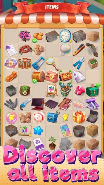 合并并收集隐藏在城市中的物品,它们以后可能会派上用场。随着您扩展城市,将发现更多物品。用它们来修理商店、房屋或出售额外的物品,以确保每家商店都有最好的外观。