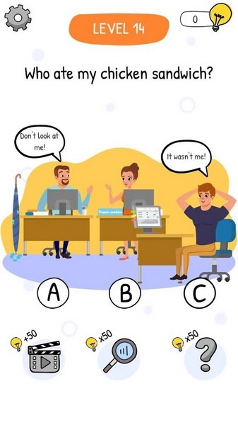 是谁脑筋急转弯和谜语破解版是一款非常有趣的解题猜谜闯关游戏。在这款游戏中每道关卡都会与不同的场景布置,解开谜题的关键就隐藏在这些细节中,根据人物的对话和动作等来分析找出真正的答案。游戏有多种难度供玩家挑战,如果对自己的思维能力有信心的话不妨来挑战最高难度。本页面提供无限提示的破解版。