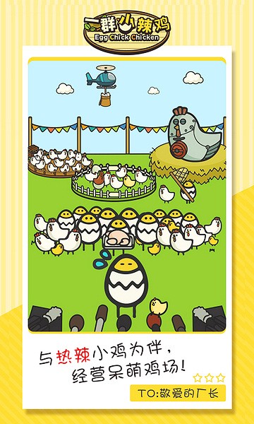 一群小辣鸡是一款非常可爱的模拟经营类游戏,游戏主要讲述了一群小鸡们的故事,在这里玩家们将管理一家养鸡场,养鸡场内所有小鸡的生产、供应以及销售全都需要大家亲自操作,大家需要为里面的小鸡建造舒适的窝棚,才能让母鸡们可以生产更多高品质的小鸡,同时大家还能改良小鸡的品种,提高工厂的生产进程,不断扩大养鸡场,以此获得更加丰富的奖励!