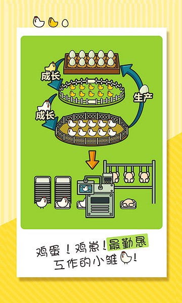 游戏里的特色挺多,比如每三分钟就是一天,随时随地都能玩,特别方便。玩法也很简单,主要是孵蛋、养殖小鸡、加工鸡肉然后出售赚钱。游戏还提供了一些进阶玩法,比如升级设备、改良小鸡品种,这样可以提高生产效率,赚更多的钱!