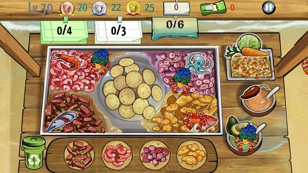 5、按照顺序将其他食物拖动到土豆片上,完成相应的数量即可。