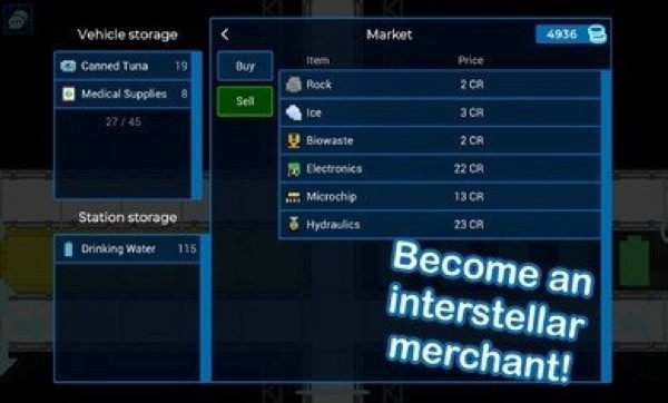 3、开采稀有小行星,在星系间交易各种商品获取利润,升级你的载具;