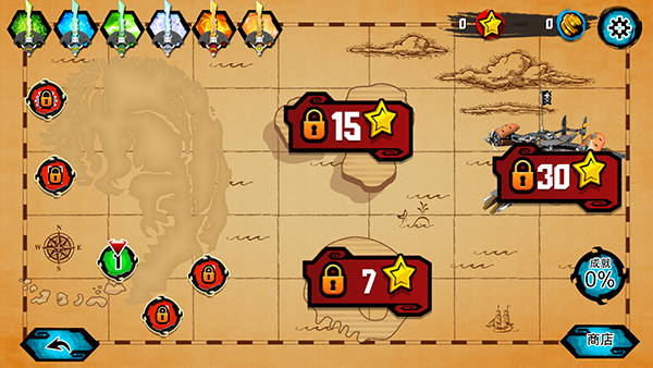 除了螺钉外,玩家还需要找寻每个关卡中的5个星星,收集一定数量的星星可以解锁其他的章节,忍者装备有地图可以提示星星的位置,不过购买时机建议延后,前期先买钩子、双节棍、吸盘之类的道具比较实用,后面在购买地图找那些比较偏僻的星星。