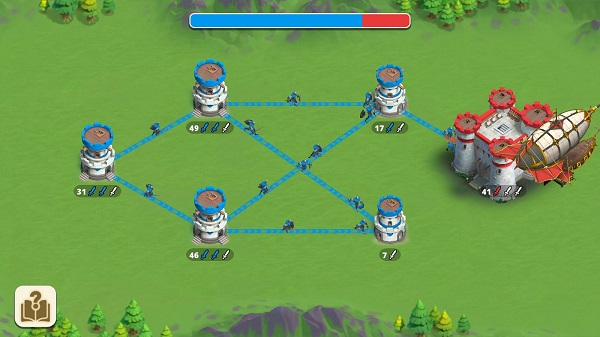 用手指滑动可以创建塔楼之间的连接。这时士兵们会不断的进行入侵,攻占其他塔楼;