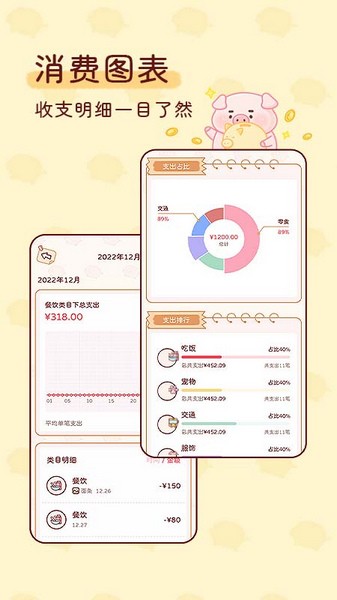 2、每完成一类记账,会对应出现一只可爱小猪。