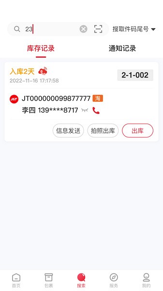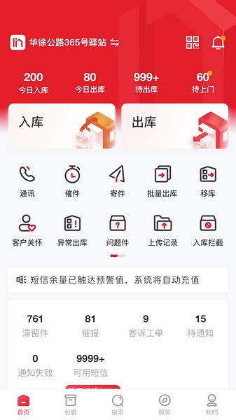 1、快递入库:扫描入库,短信群发,超省时;