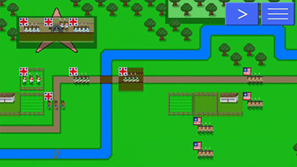 像素兵团萨拉托加战役中文版是一款像素画风的策略战争类手游,它是根据真实历史上的萨拉托加战役改编而来的,采用了回合制战棋和现代化的军团战斗元素。玩家们在游戏中将成为一支军队的领导,需要带领自己军队的士兵们与敌方进行战斗,其中各种不同的兵种包含步兵、炮兵、骑兵等都等待着大家的踩空,大家可以充分利用自己的战略来取得最终战役的胜利。