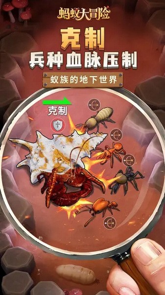 1、很多的昆虫将会成为蚂蚁的敌人,玩家们可以去派出强大的兵蚁来去对昆虫发起进攻,击败它们还可以去充当食物;