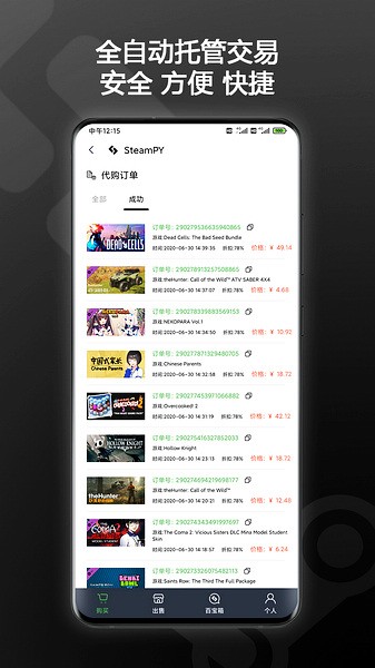 1、打开steampy app后在我的界面选择买家的cdk订单。