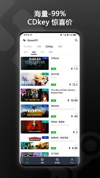 steampy是一款非常好用的游戏社区平台,主要是为广大使用steam的玩家们准备的,其中为大家准备了非常丰富的游戏,超多热门游戏以及市面上最新的游戏大家都可以看到,并且每一个游戏的价格都十分清楚的显示出来,超多折扣让大家买更多自己心仪的游戏也不会觉得肉疼。除此之外,其中还为大家提供了非常可靠的steam充值卡,充分保证用户的交易安全。