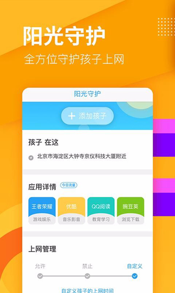 5、可在线实现孩子守护功能,添加孩子成功,就能实时守护孩子上网;