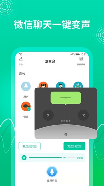 2、便捷好用的手机变声器工具,在线所提供的特效素材及时更新;