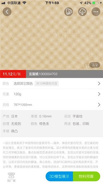 纸虫虫app是一款非常好用的设计服务类软件,主要针对于纸张设计打造的,其中的功能十分丰富,并且所有的功能全都是免费的,为用户们提供了在线查看纸张3D模型、物料制作预算、工艺流程详解等服务,对于广大的设计师们来说是个非常便捷非的工具,同时纸张的商家们也可以更加轻松快速的查看到制成品,纸虫虫内丰富的纸库绝对会给大家非常好的体验。