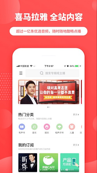 海量丰富的喜马拉雅音频内容展示,帮助用户快速找到想听的内容。