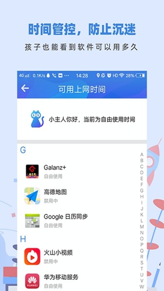 防沉迷可以规划孩子每天的上网时段,连续上网时间和休息时间,日程计划可以规划好每天要做的事项并作出提醒,防止手机上瘾,保护孩子健康,还能帮助孩子养成良好的生活习惯。