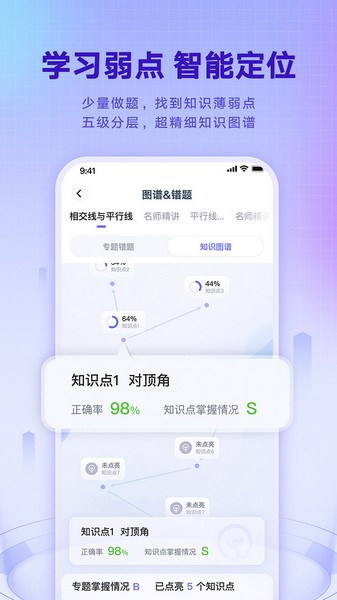网易有道智学是一款通过连接多种智能设备来进行在线教育的软件。这款软件可以在用户使用智能学习设备学习时提供辅助,帮助用户制定合理的学习计划,根据学生的学习进度来实时调整教学计划,模拟真人教师的教学思路来辅导用户学习。针对每位学生的学习短板进行针对化的训练,通过多样的互动方式来提高成绩。