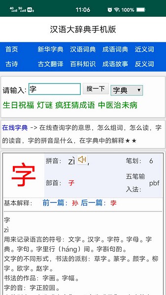 ②拼音、部首、笔画多种检索方式
