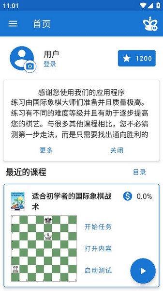 Chess King付费解锁版是一款手机上学国际象棋的软件,特别适合想提升棋艺的人。它不仅提供免费的理论知识和棋谱,还有实操任务帮助用户更好掌握技巧。无论是新手还是有一定基础的玩家,都能找到适合自己水平的课程。
