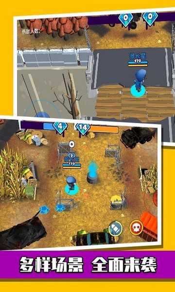 新手的话完全不用担心,操作步骤很简单:拖动左边摇杆移动,点右边按钮就能开枪了。还有各种道具和技能可以使用,战斗策略性很强。如果你喜欢射击游戏,这款游戏绝对值得一试!