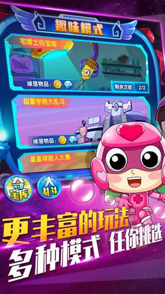 3、开心超人机甲联盟画风可爱,画面精美,玩法繁多。