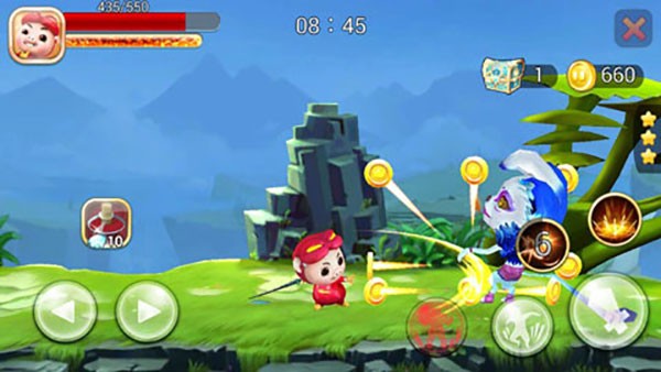 针对于游戏的玩法来说,与一般的横版闯关游戏无异,左侧控制移动,右侧依次是变身、跳跃、攻击和两个强悍的技能,其中变身需要能量,战斗连击COMBO效果非常的好,变身之后战力大幅度增强,完成关卡任务,击杀所有的敌人即可完成。