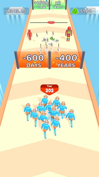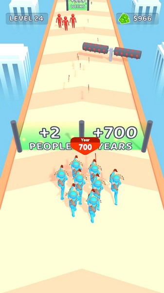 群体进化破解版游戏是一款简单有趣的跑酷闯关游戏。在这款游戏中玩家可以操作指挥人物前进,通过不同的时间门会促使人物进化, 从原始人逐渐进化变为手持各种武器的士兵,并且人数也会变得更多。如一般的跑酷玩法一样,玩家在前进的同时也需要注意避开道路上的障碍物,避免人数的减少。本页面提供无限金币的破解版。