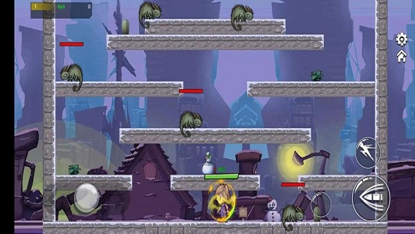 游戏有两种模式:排位赛和挑战模式。排位赛里你需要躲避对手攻击,同时尽量击杀敌人并把他们的雪球推走,积分最高的人就能赢。挑战模式则会遇到各种中立怪物,比如第八关的蝙蝠会干扰你的方向,后期还有BOSS关卡,玩起来很有挑战性。