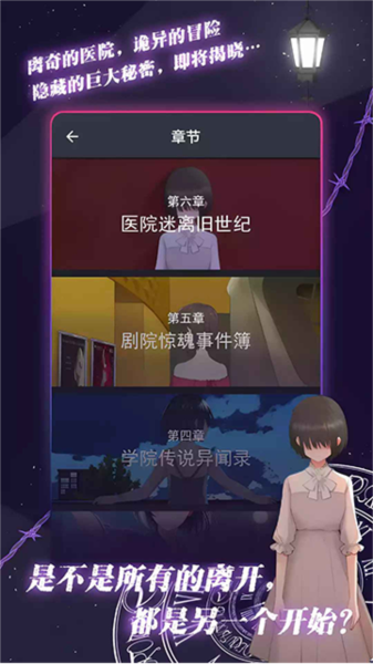第四、五、六章为“院系列”的三部曲,经过主角与你在学院、剧院、医院的冒险,逐一解开主角身世秘密的隐藏谜团,藏匿在众人背后的巨大真相也终于慢慢浮出了水面……