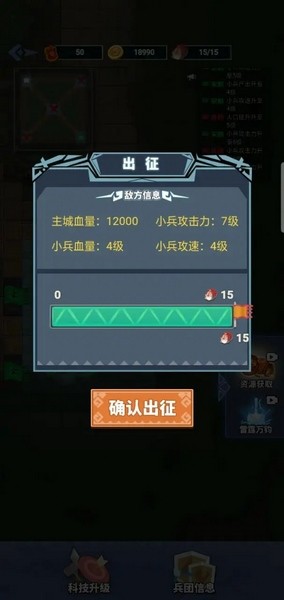 9、小兵攻击力和小兵血量都升到3级,为了刷新新兵,找家兵力弱的进攻他主城。