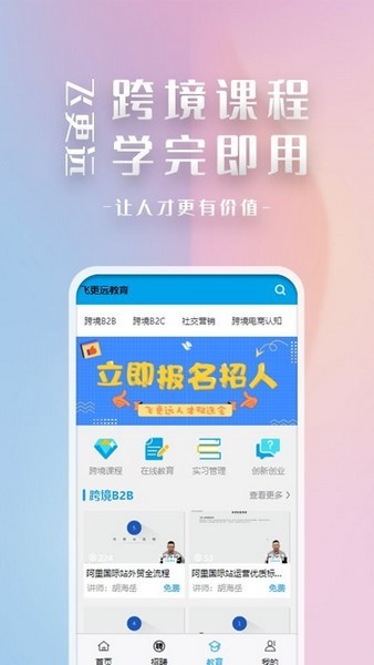 飞更远app是一款求助招聘软件,用户可以在这里发现大量的工作机会,每个行业都有,而且能够同时为政校企三方群体提供服务。除了按照岗位浏览外,还可以直接查看每个公司的信息,包括他们提供的职位,让你可以在自己喜欢的企业找到合适的工作。同时还有跨境课程、实习管理等功能, 可以满足更多岗位的使用需求。