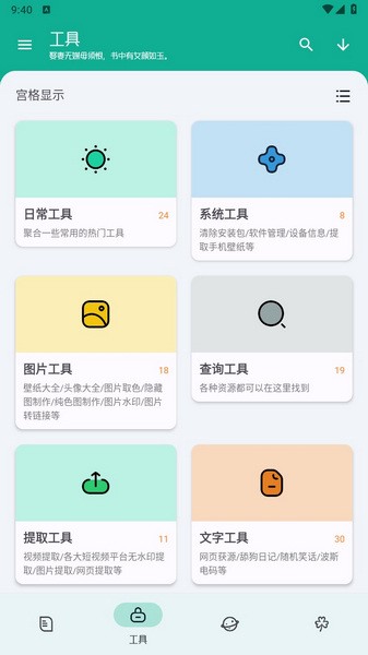 工具大师app是一个装满了各种实用小工具的软件,功能超级多,从图像处理到视频解析,再到桌面壁纸,几乎都能在这里找到。用户可以根据自己的需求选择工具,满足大部分日常使用的需求。现在已经有上百种工具了,而且还会不断更新,体验感越来越好。