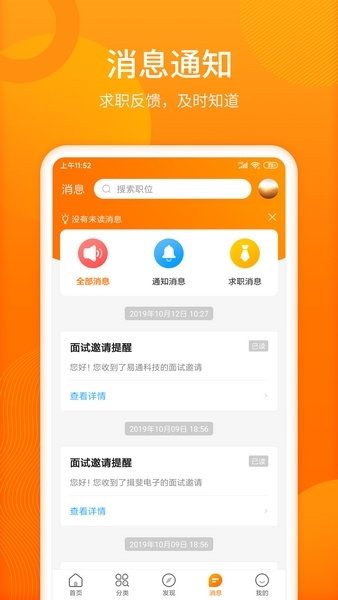 根据消息提醒,迅速就可以进入阅读人人微聘