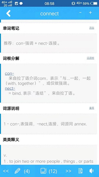 3、接着是词根记忆,和词源说明。会告诉你这个单词中包含的词根和词缀,词源说了它的来历更加让人记忆深刻。
