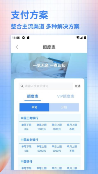 一键输入关键词进行搜索,即可快速找到要了解的额度表;