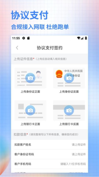 3、在协议支付签约页面,上传身份信息即可进行支付