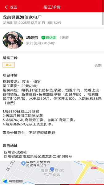 厂趣app还有一些特别的功能,比如个性化推荐、在线沟通等,这些都能让求职过程变得轻松愉快。对于工厂来说,发布招聘信息也很简单,填写职位要求后,系统会自动推荐合适的求职者,效率真的很高。