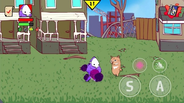 游戏中有多种特色玩法,比如经典的格斗模式、丰富的热梗技能系统以及多样的场景互动。每个被击败的敌人会掉落独特的道具或技能卡片,增加了战斗策略的变化和趣味性。游戏的画面采用鲜艳明快的卡通风格,音效设计也非常搞笑,完美契合游戏节奏。