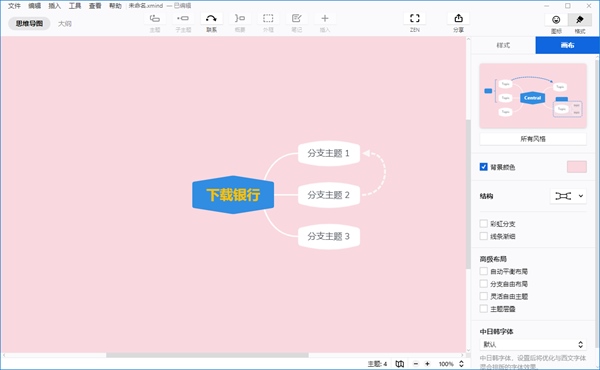 2、ZEN 模式ZEN 模式让你专注于思维导图本身。让你全神贯注地进行思维的发散和整理,得出更好的解决方开启彩虹分支