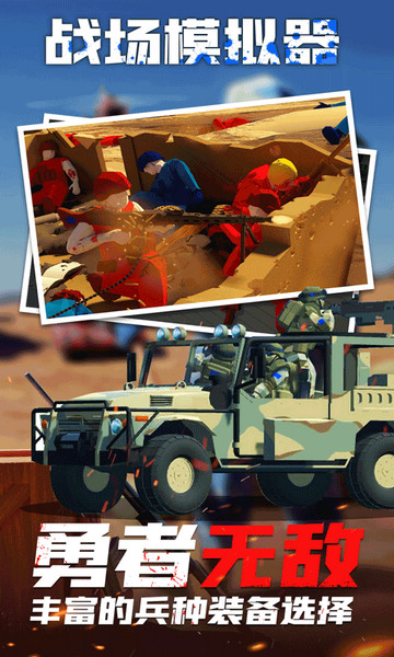 战场模拟器是一款以战争为背景的对战游戏,玩家需要合理搭配兵种,从而获得战斗力的最大化。尽管游戏操作简单,但却有着丰富的策略玩法,作为指挥官的玩家需要尽可能的消灭消灭敌人才能获得胜利。游戏有着丰富的枪械武器可供玩家解锁,还能控制飞机大炮对敌方发起空袭。游戏有着丰富的兵种和自由的策略玩法,逼真的战场环境,玩家能够在这里获得全新的战斗体验。