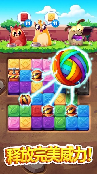 1、这是一款非常有趣的卡通趣味消除类游戏,各种小动物角色,自由扮演;