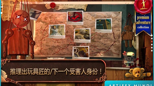 致命迷局玩具匠是一款解谜冒险手游,玩家在游戏中扮演一名侦探,调查一系列谋杀案。这些案件的凶手被称为“玩具匠”,因为他会在犯罪现场留下奇怪的玩具作为标记。游戏的主要任务是寻找隐藏物品、解开谜题,并逐步揭示背后的真相。玩家可以选择休闲或专家模式进行挑战,不同模式下提示和错误惩罚机制有所不同。通过细致观察场景、收集线索并合理运用逻辑推理,玩家能够推动故事的发展。